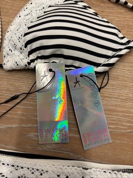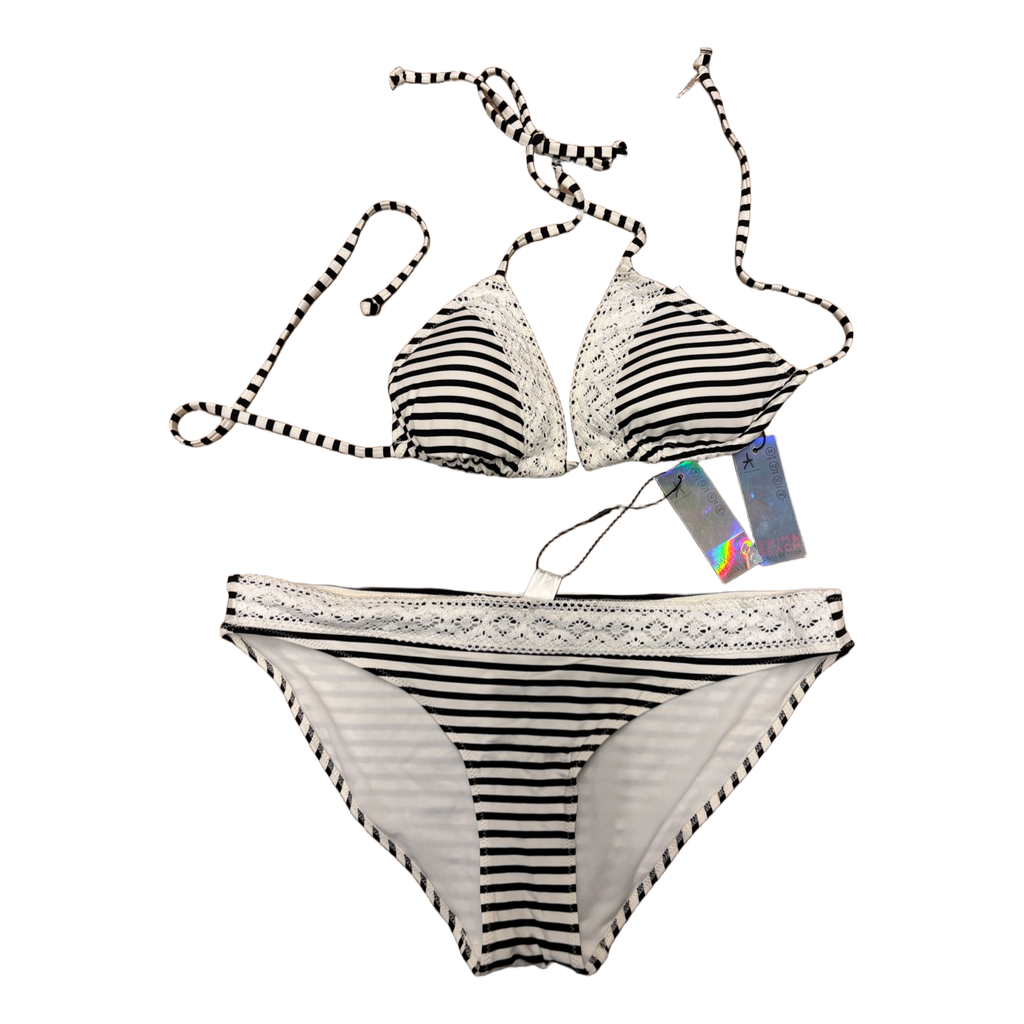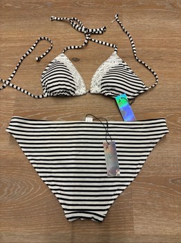Bikini set in black and white stripes with lace trim detail. New with tags. Size 42.