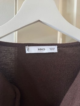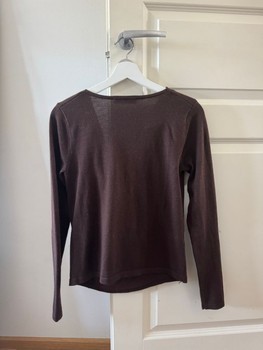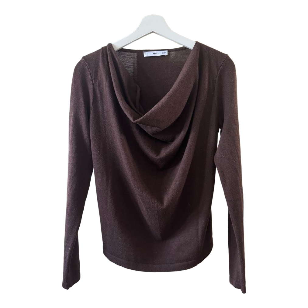 Brown long-sleeved shirt with a draped neckline. Size S.