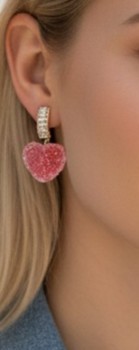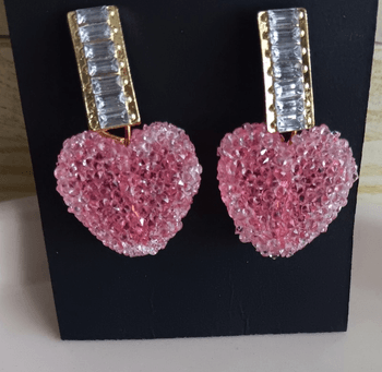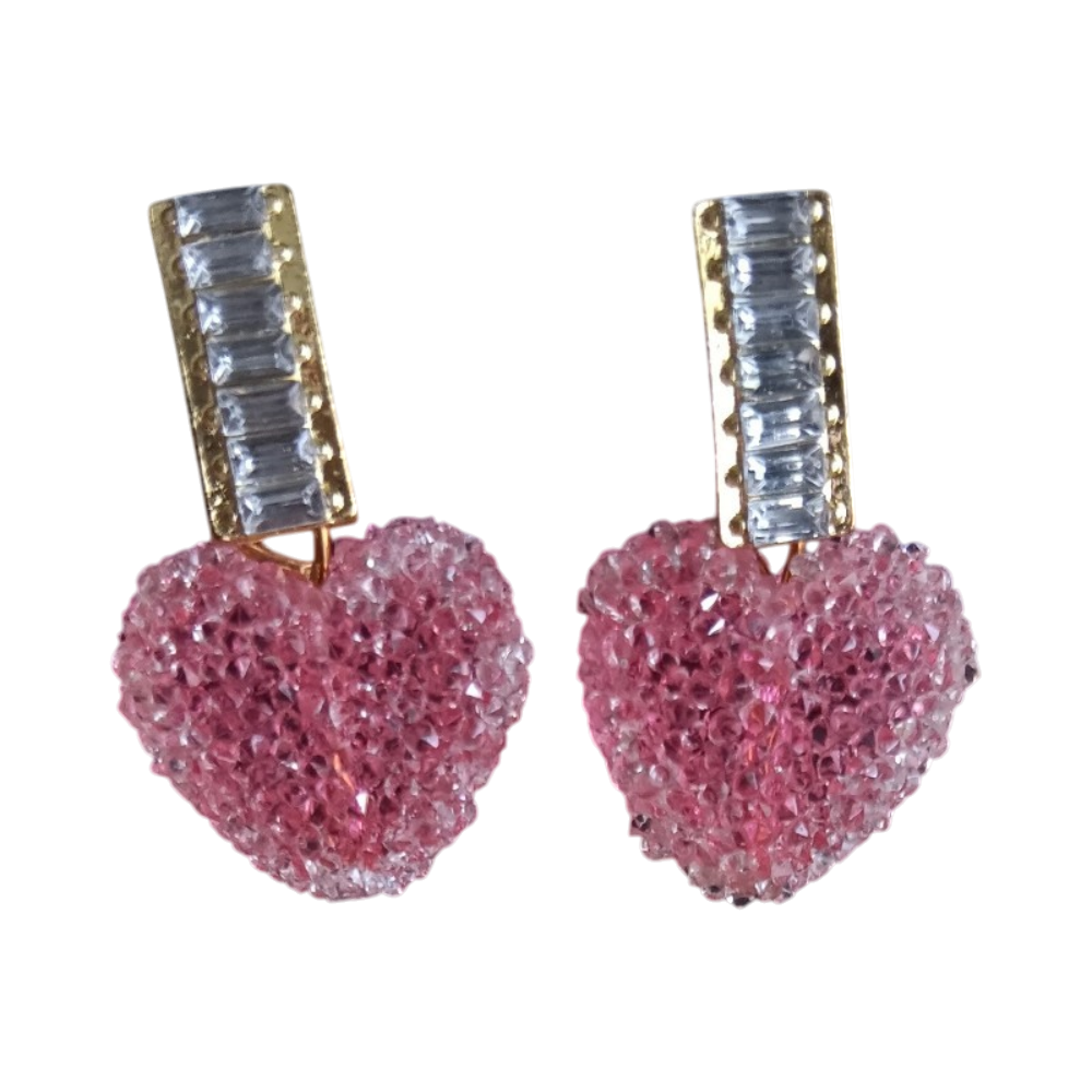 Dangling earrings, pink crystal decorations, gold-colored details. Jewelry metal alloy. Unused. Backs included.