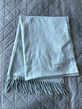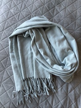 Worn appropriately five times and washed. Mint-gray color. Width 73 cm, length including fringe 212 cm.