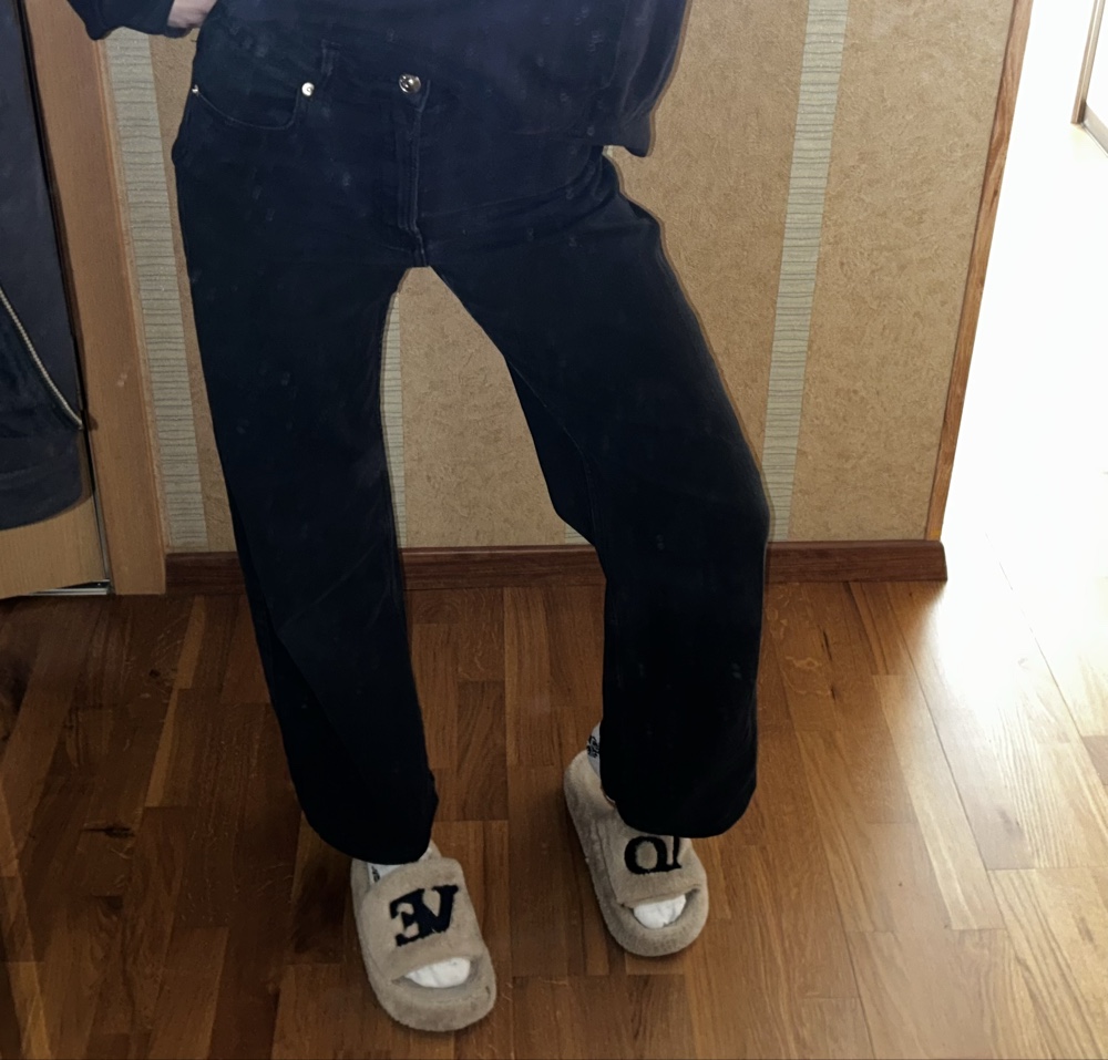 Simple black denim trousers. Comfortable straight-cut model.