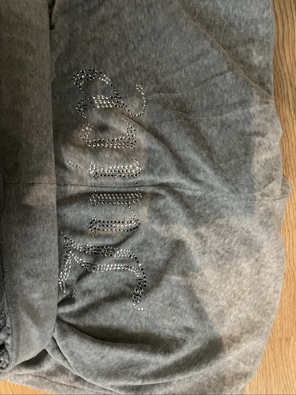 Grey Juicy Couture velour trousers. with a diamanté logo.