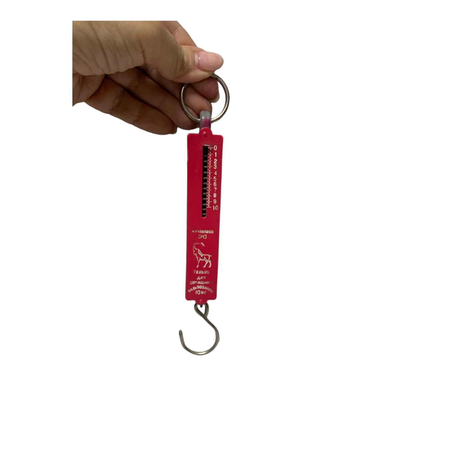 Manual spring scale with a hook. Designed for household use up to 10 kg.