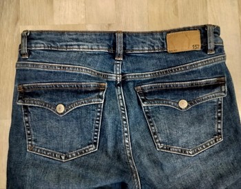 Blue jeans. Size S, model short.