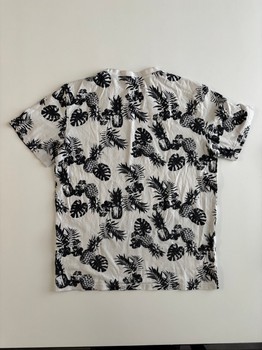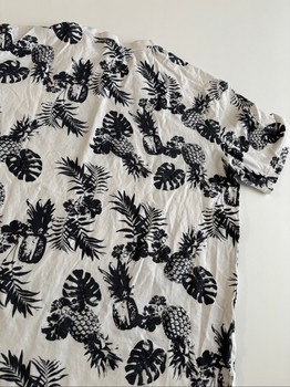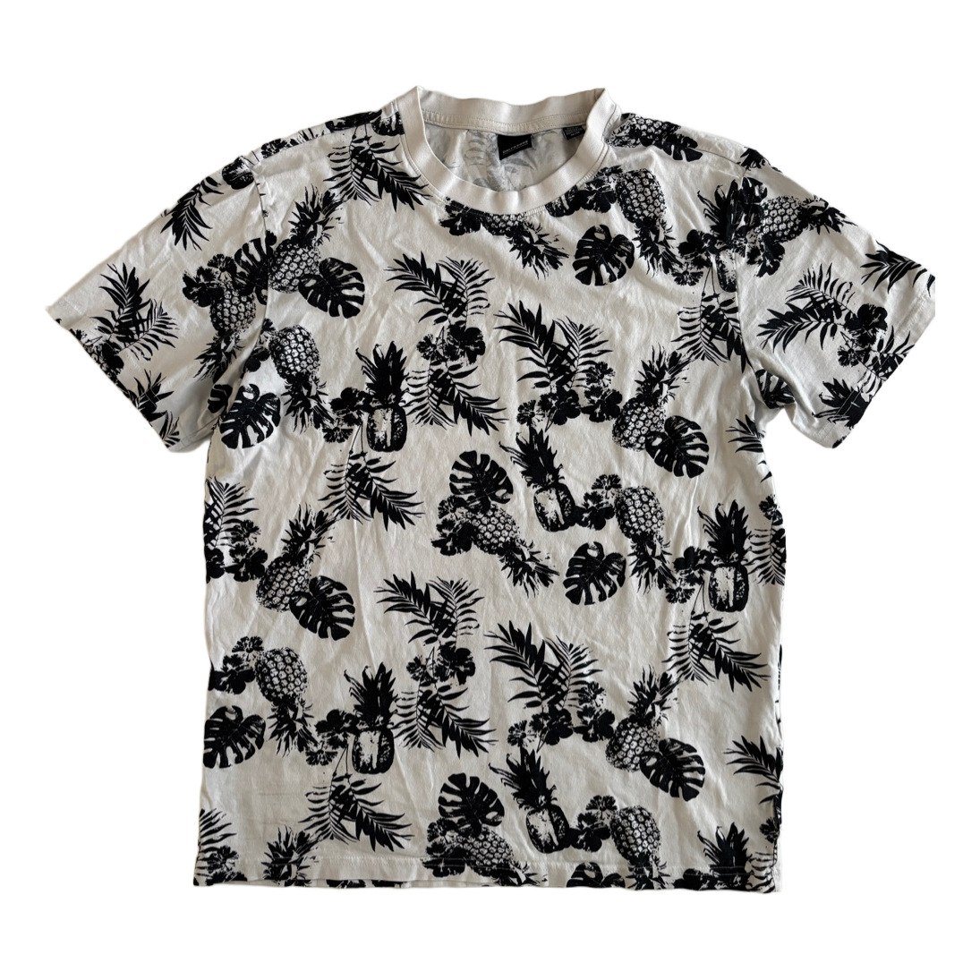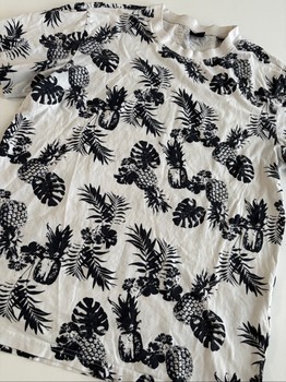 Men's black-and-white pineapple-patterned t-shirt. Size M. True to size. Used, but intact and clean. No complaints about condition.