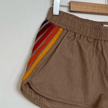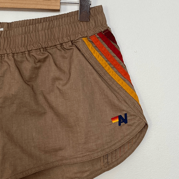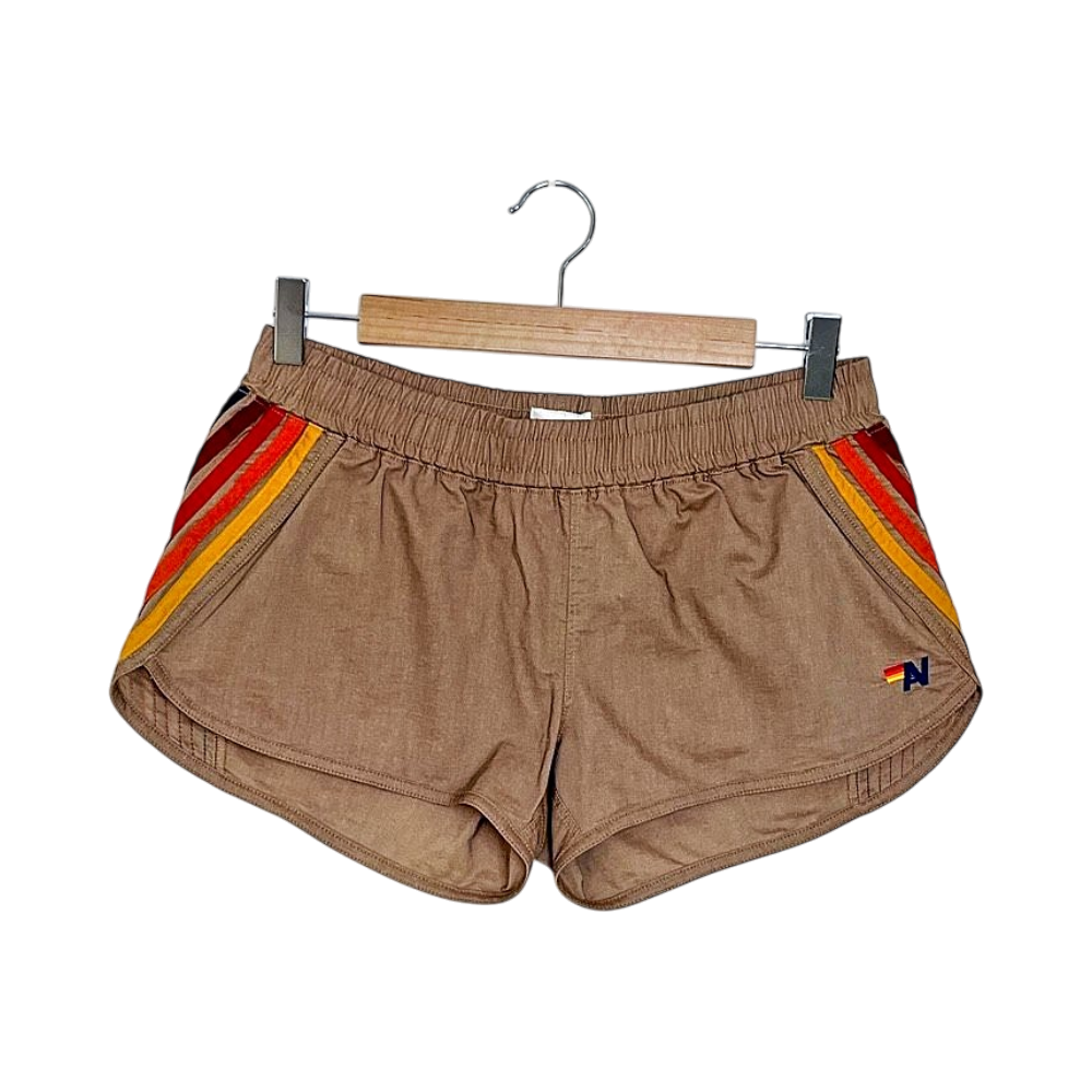 Brown /beige color womens sport shorts in size M. Great pre-owned condition, no stains or tears. Measurements: waist 37cm, inseam 6-7cm, rise 20cm, item length 23-27cm.