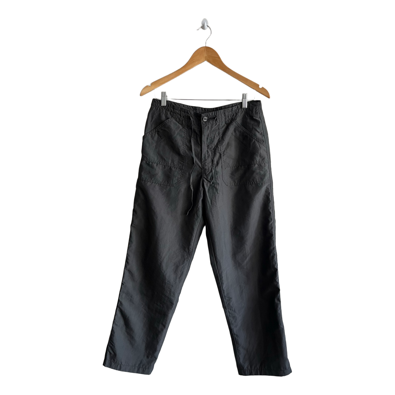 Grey casual trousers with front pockets and a drawstring waist. Size S.