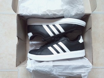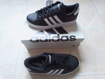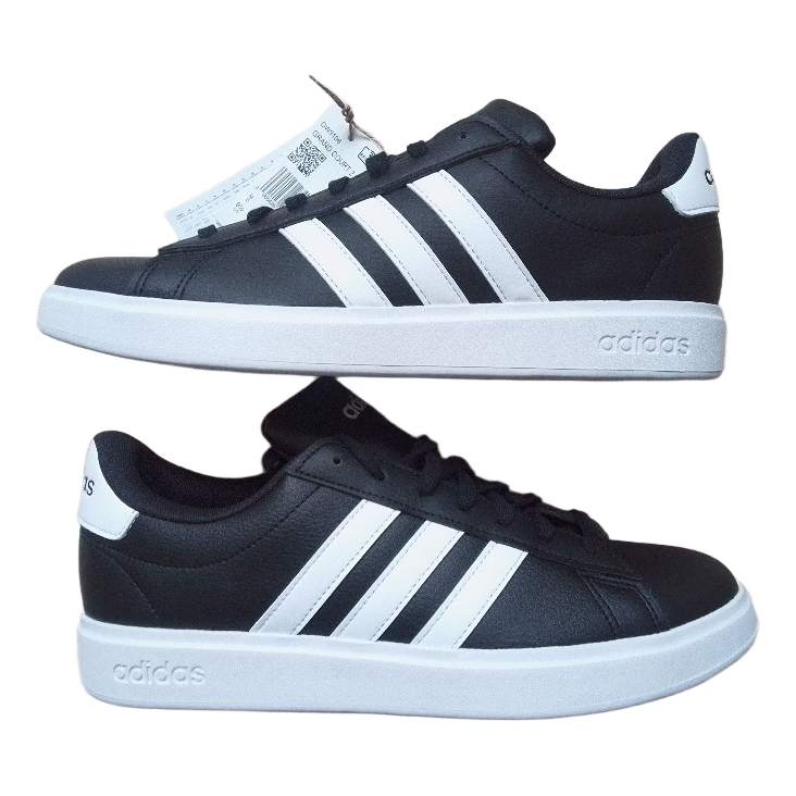 Black and white Adidas Grand Court 2.0 sneakers with Cloudfoam insoles. New with original box and tags. Size 43 1/3.