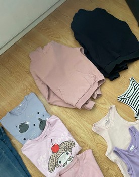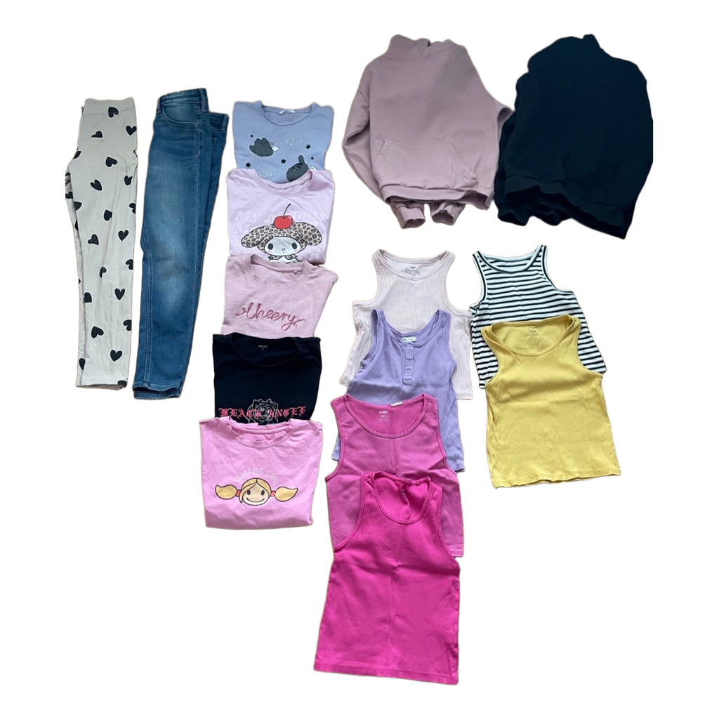 Versatile clothing package including shirts, tops, hoodies and pants. Size 140/146.