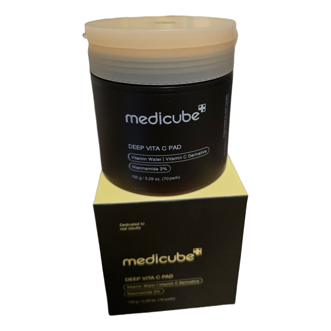 Medicube deep vita c pads containing vitamin water, vitamin c derivative, and 2% niacinamide. Contains 70 pads.