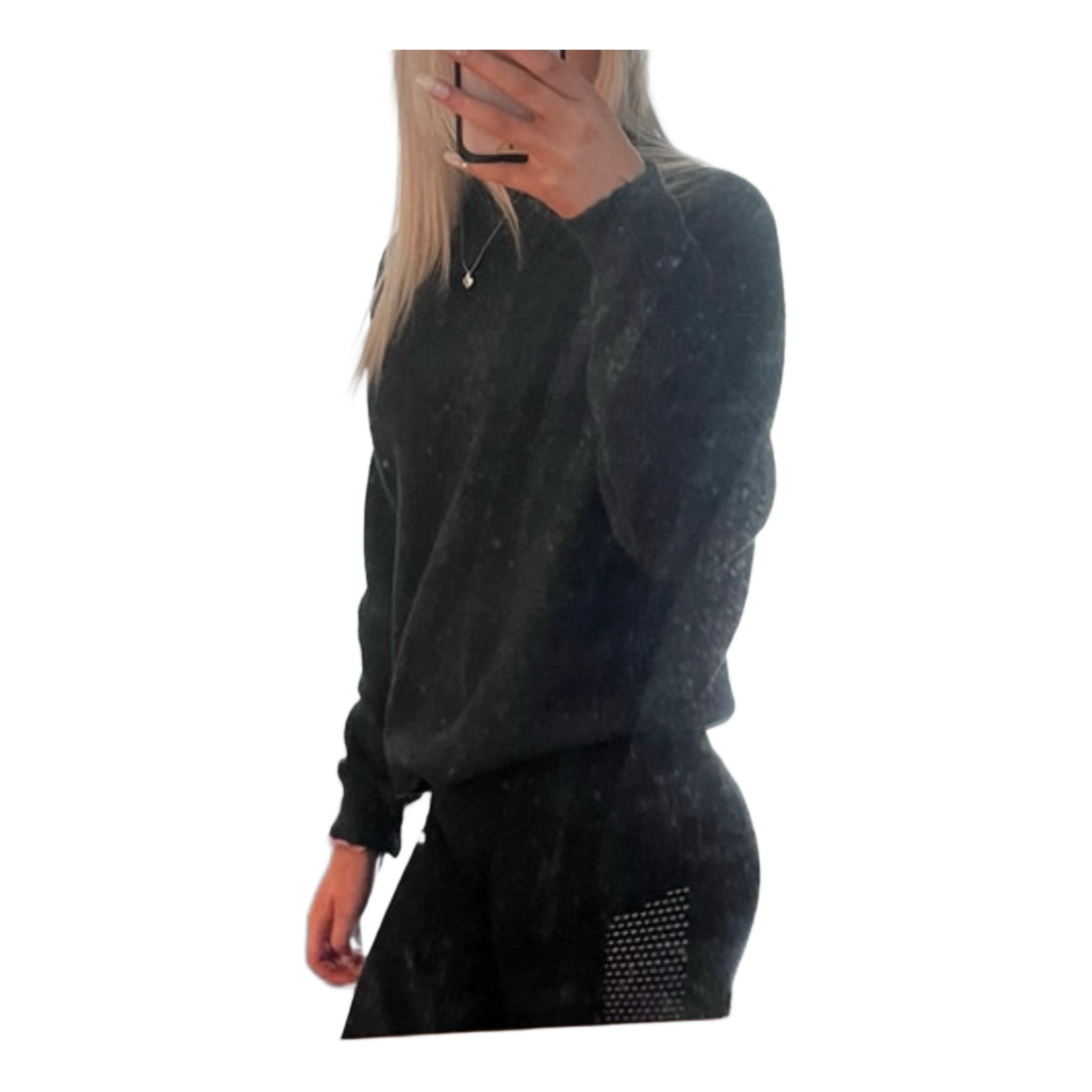 Dark blue long-sleeved knit. Lightweight material.