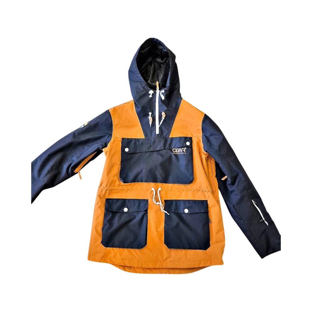 The jacket has drawstrings at the waist, a kangaroo pocket at the front and a side zipper to make dressing easier