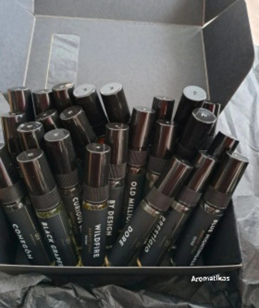 Set of Aromatikas ambient spray fragrance samples in a black box. Includes various scent options. 24pcs