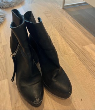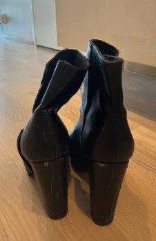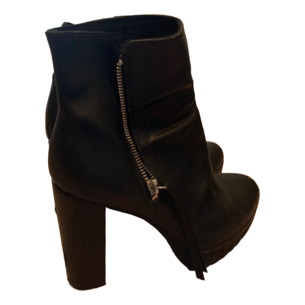 Black ankle boots with zipper detail and high heel. Wear, visible in the pictures.