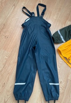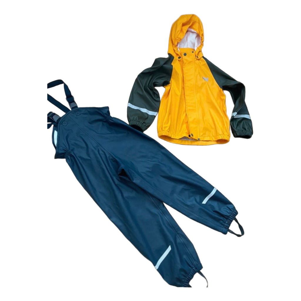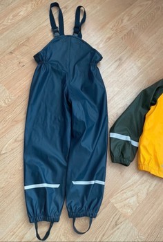 Only used a few times. Helly Hansen rain set, with features. Jacket size label 122 cm, corresponds to size 116 cm. Bib pants size 116 cm, corresponds to size 116 cm. Measurements -> Jacket: pit-to-pit 42-43 cm; shoulder-to-hem 50-51 cm. Bib pants: crotch-to-hem 51 cm.