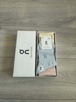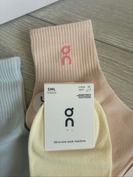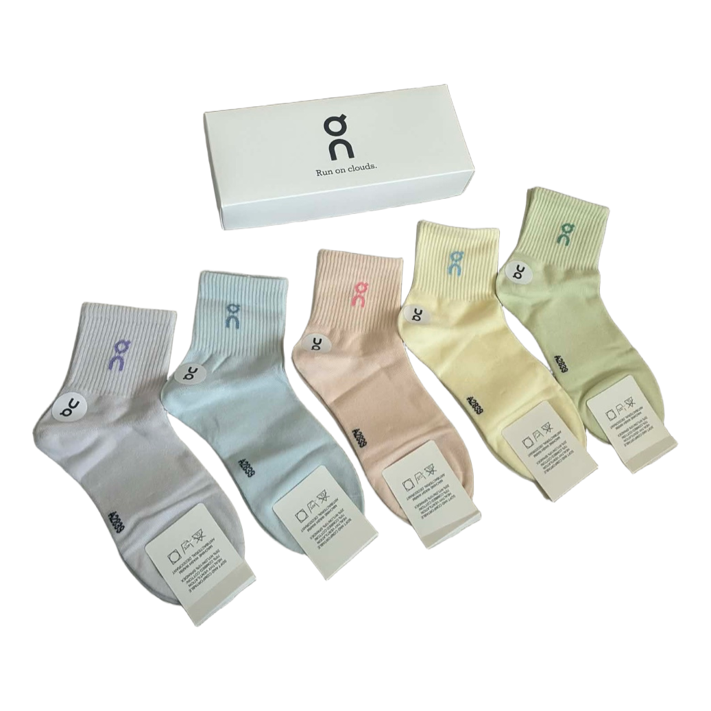 Set of five ribbed ankle socks in various pastel colors. Comes in original packaging. Size SML.