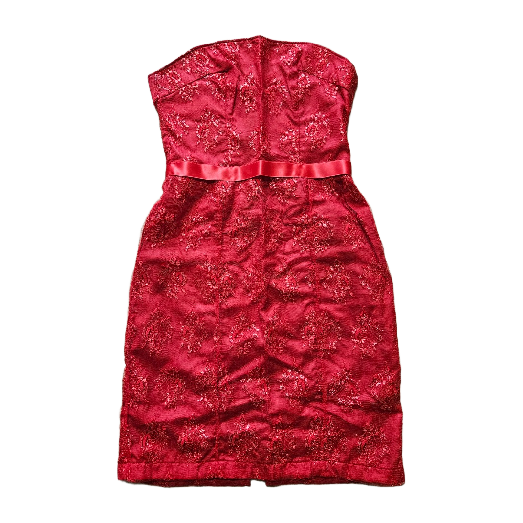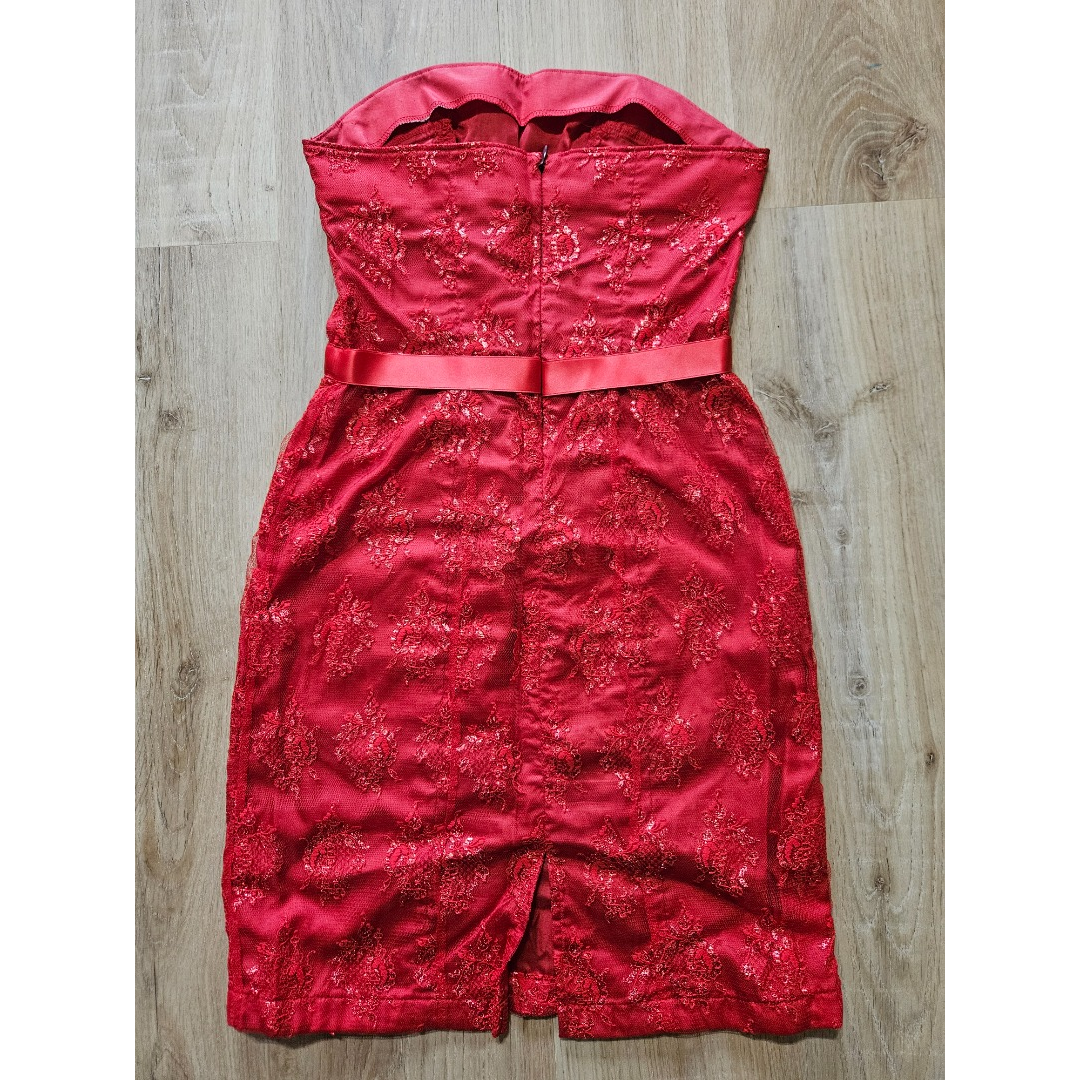 Lace sheath dress, back slit and zipper on the back. No size label, estimated 34. Christmas party.