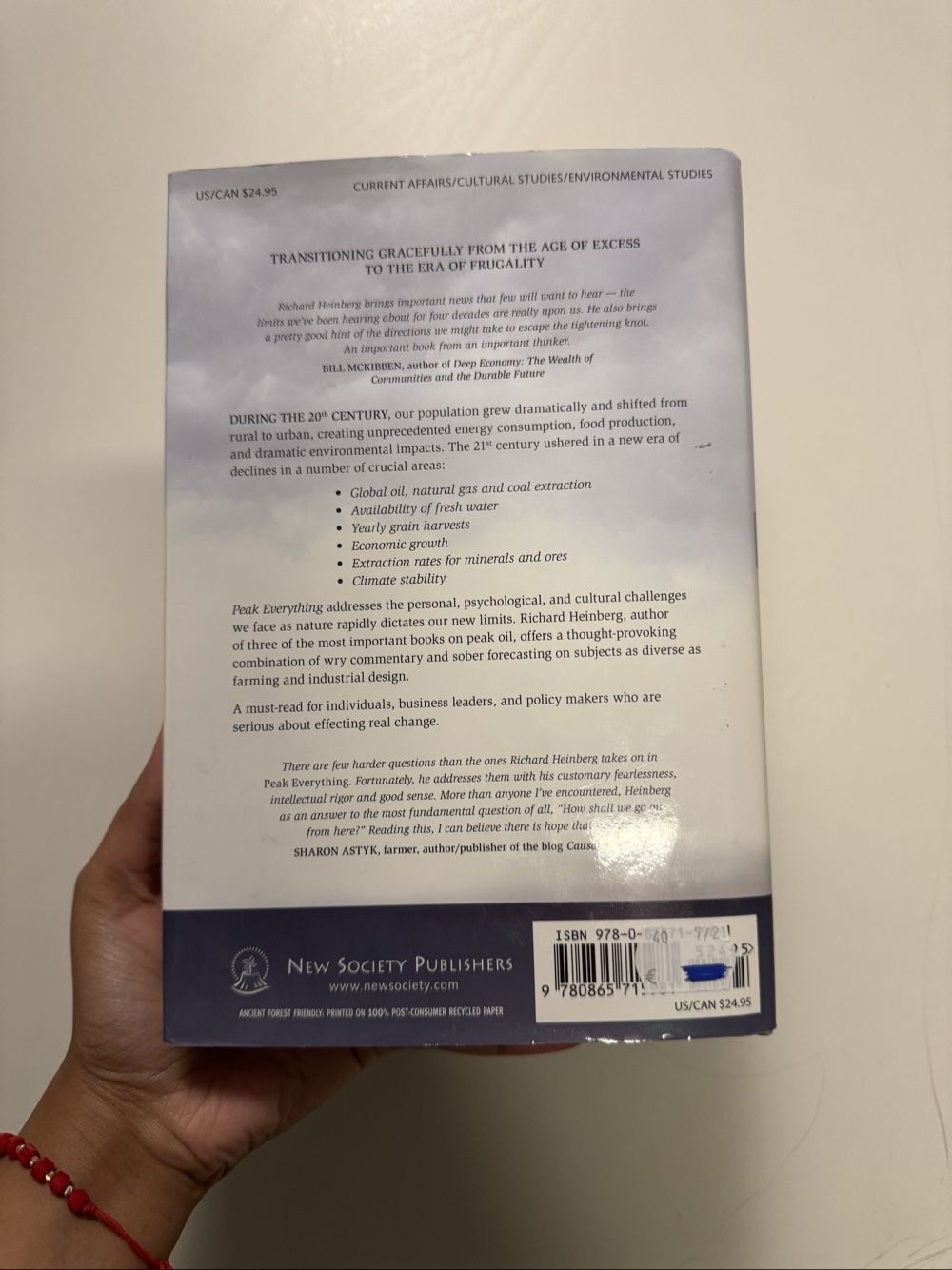 Book by Richard Heinberg discussing environmental challenges and societal changes. Explores crucial areas such as resource availability and climate stability. Published by New Society Publishers.