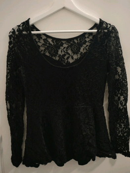 Black, lace Gina Tricot BONITA TOP (peplum), size S.