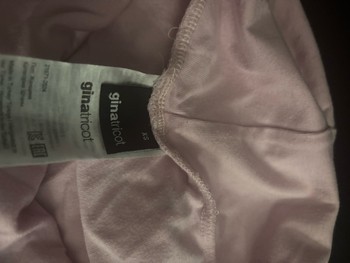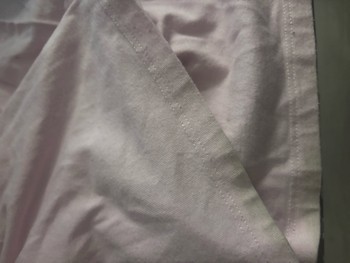 Light pink wide-leg pants with a foldable waistband strip. The cuffs have dark spots that did not come out in the wash. No other signs of wear.
