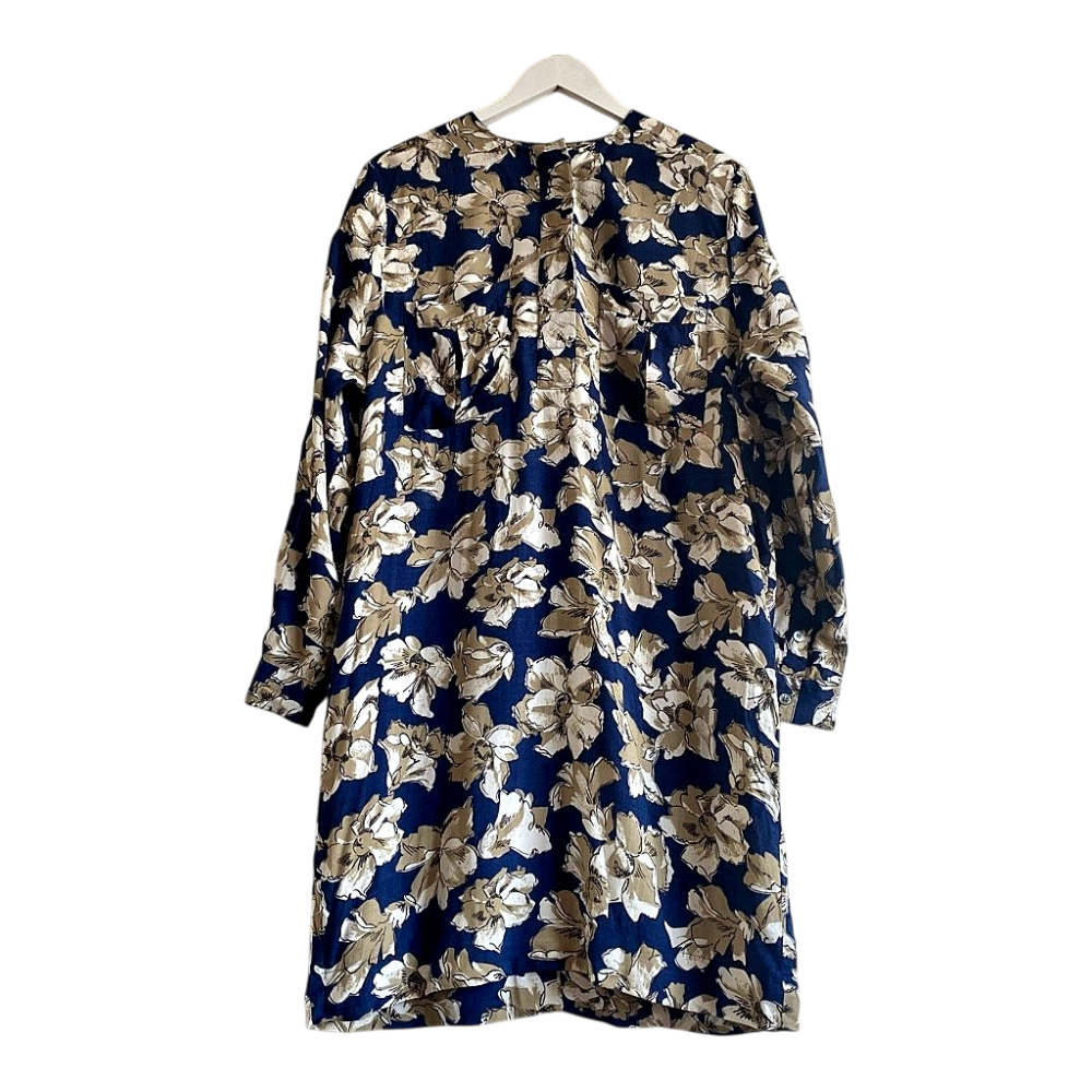 GANNI Copenhagen Floral Tunic Dress Blue Viscose Oversized Relaxed Fit L