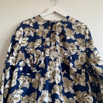 This piece has a relaxed oversized silhouette and can be worn either as a tunic or a dress. The blue floral print gives it a fresh Scandinavian look.