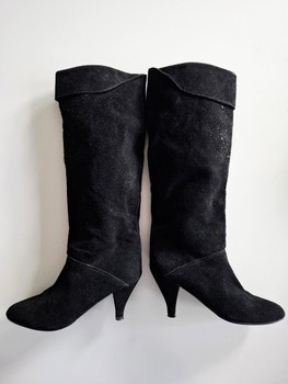 Vintage black suede heeled boots