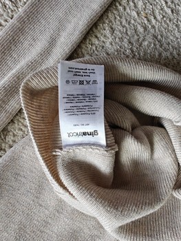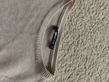 Light beige knit sweater, with long sleeves. Size XS, made of polyester and viscose.