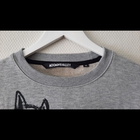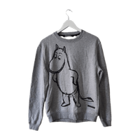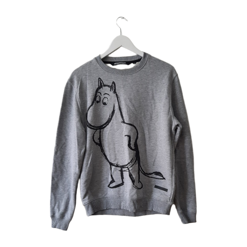 Miesten muumi aiheinen collegepaita koossa M. Hyvä käytetty kunto, pientä martinexmaista pesunukkaa kankaassa.