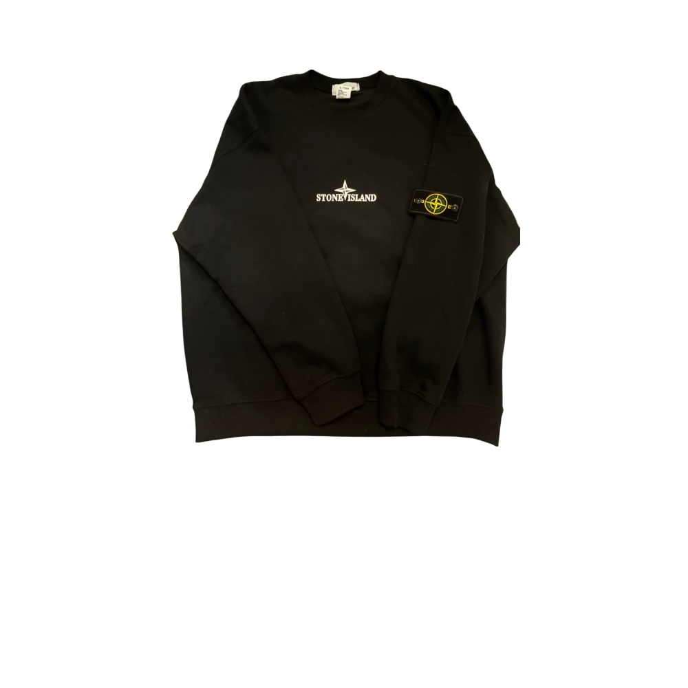 Black crewneck sweatshirt with Stone Island logo print, excellent condition.