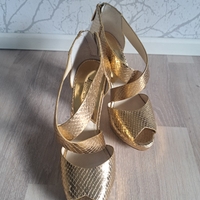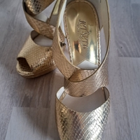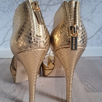 Kuin uudet, upeat MK kultaiset korkokengät, avoin kärki, zip-takana.