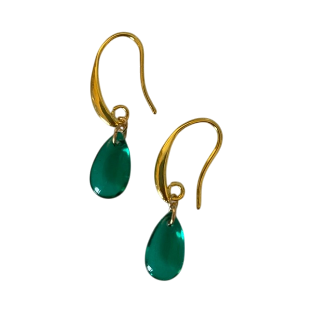 Käsintehdyt korvakorut vihreillä lasisilla pisarahelmillä💚