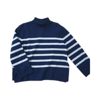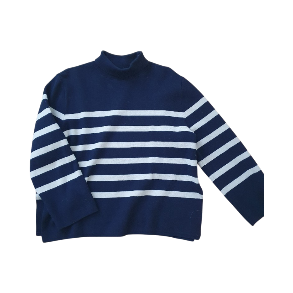 Sinivalkoinen paksua neulosta oleva turtleneck-neulepaita. Mukavan tuntuinen kangas. Jokin yksittäinen nyppy pinnassa
