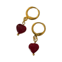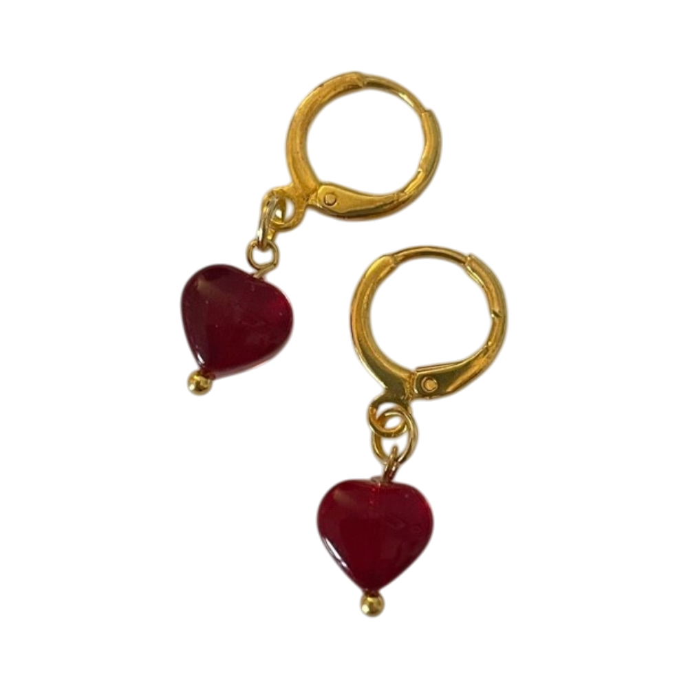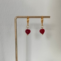 Pienet itsetehdyt sydänkorvakorut punaisilla lasisydämillä❤️ Renkaiden halkaisija 10mm.