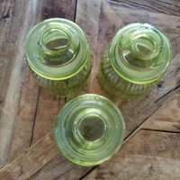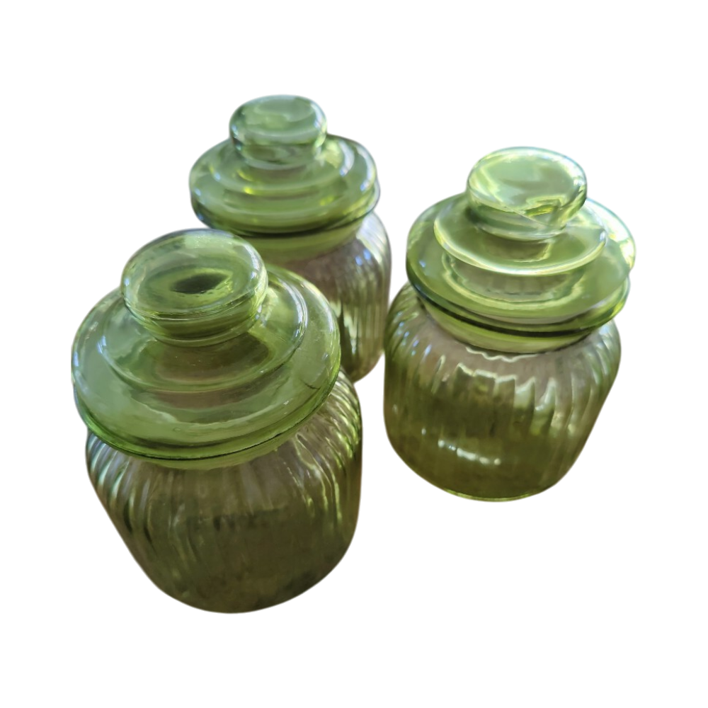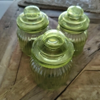 Kolme kannellista lasipurkkia, tiivisteet mukana. Ei näy käytönjälkiä. Myydään yhdessä.