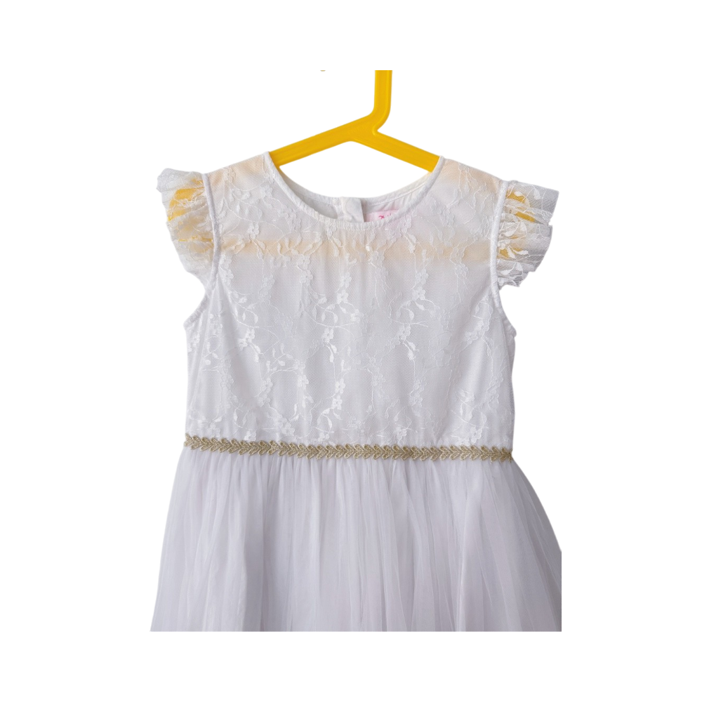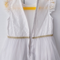 Myydään sievä valkoinen tyttöjen juhlamekko.