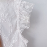 Yläosa on kokonaan kaunista pitsiä ja olkapäillä on pitsiset koristeelliset reunat.