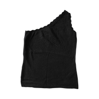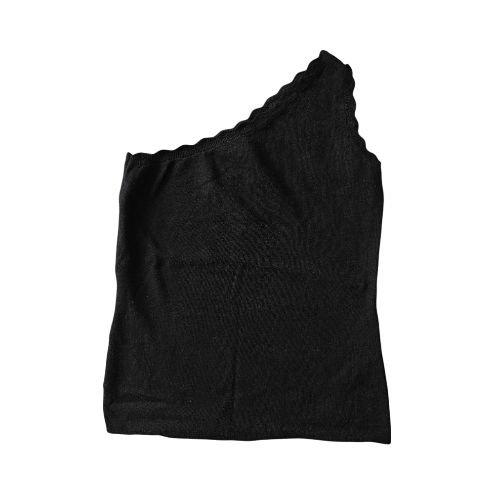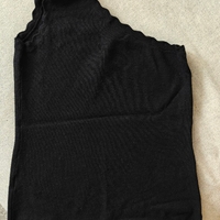 Yksivärinen musta yksiolkaiminen neuletoppi.