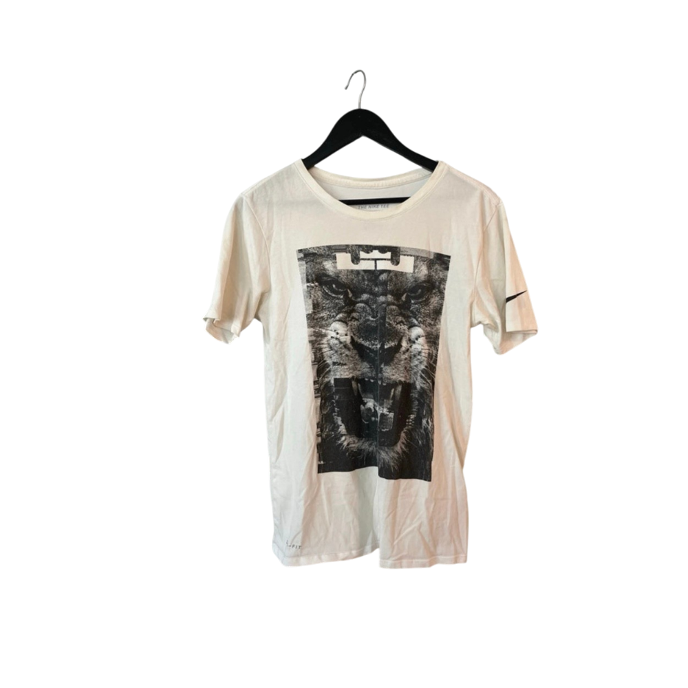 Jos oikein tihrustaa niin paidassa on pientä kulumisen pintaa, mutta näyttää edelleen hyväkuntoiselta, kuva on kankaassa eikä sen pinnalla joten kuva ei ole kulunut mitenkään, kangas on pehmeä ja hengittävä dri-fit, malli on athletic cur mutta ei ole slimmein