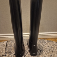 Mustat ratsastusssaappaat seuraavalle käyttäjälle! Siistit ja ehjät, vuoret hyvässä kunnossa. Hieman naarmua pinnassa saappaiden sisäsyrjän puolella. Pohjasta varren päähän hieman reilu 38 cm pituutta.
