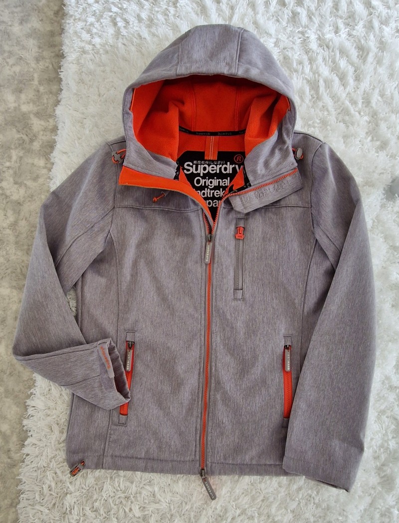 Superdry välikausitakki, M. Harmaa oransseilla tehosteilla. Tosi mukava käytännöllinen malli, kolme vetoketjullista taskua edessä. Käytetyssä siistissä kunnossa.