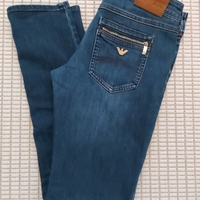 Armani Jeans siniset farkut koko 29", matala vyötärö. Kulutettu kuosi. Materiaali joustaa hieman. Haara-lahje pituus: 83 cm. Lahje 15 cm. Täysin ehjät.