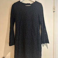 Vain pari kertaa käytetty musta mekko! Sisällä kiinni erillinen ’alusmekko’ ja hihat levenevät kyynärpäästä eteen päin. Kokolapussa koko 34, mutta olen itse m-kokoinen ja mekko sopiva eli sanoisin, että koko on paljon reilumpi kuin mitä lapussa lukee.