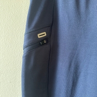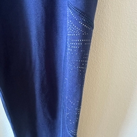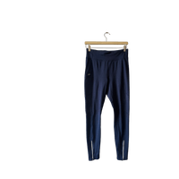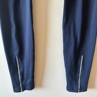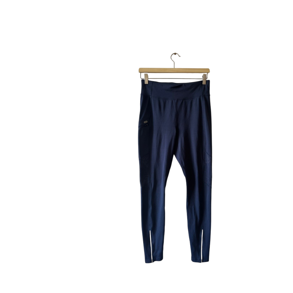 Tummansiniset, korkeavyötäröiset treenitrikoot heijastinraidoilla. Sisäpuolella ohut lämpövuori. Koko M.