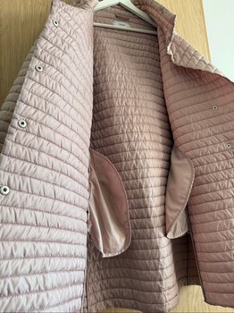 Quilted jacket in a soft pink shade with snap-button closure. Size 44.