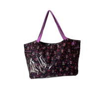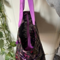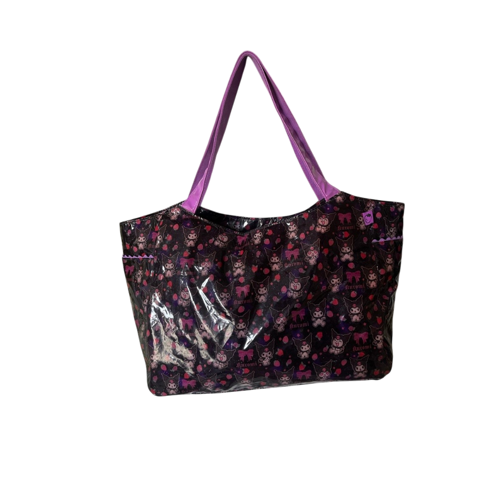 Sanrio kuromi bag. Kuviollinen vinyylinen suuri olkalaukku, vetoketjulla.