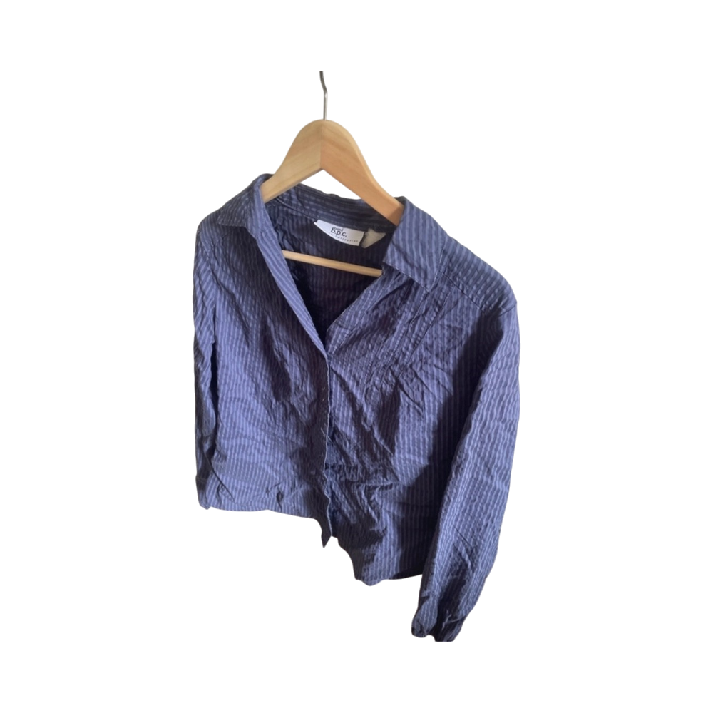Rento sininen raidallinen pitkähiha paita, kapea malli.