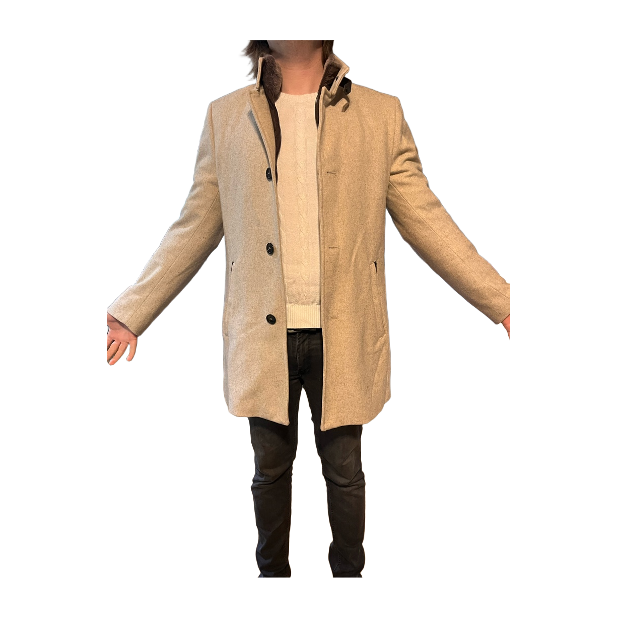 Beige villakangastakki, lämmin vuori, koko 50/ L. Kerran käytetty, uutta vastaava kunto. Kauluksessa turkisreunus ja sisällä lämmin ruskea vuori.