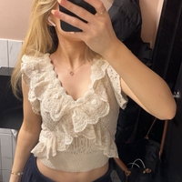 Zaran luonnonvalkoinen / beige neulostoppi, jossa on ihanat röyhelöt, koko s, vain muutaman kerran käytetty