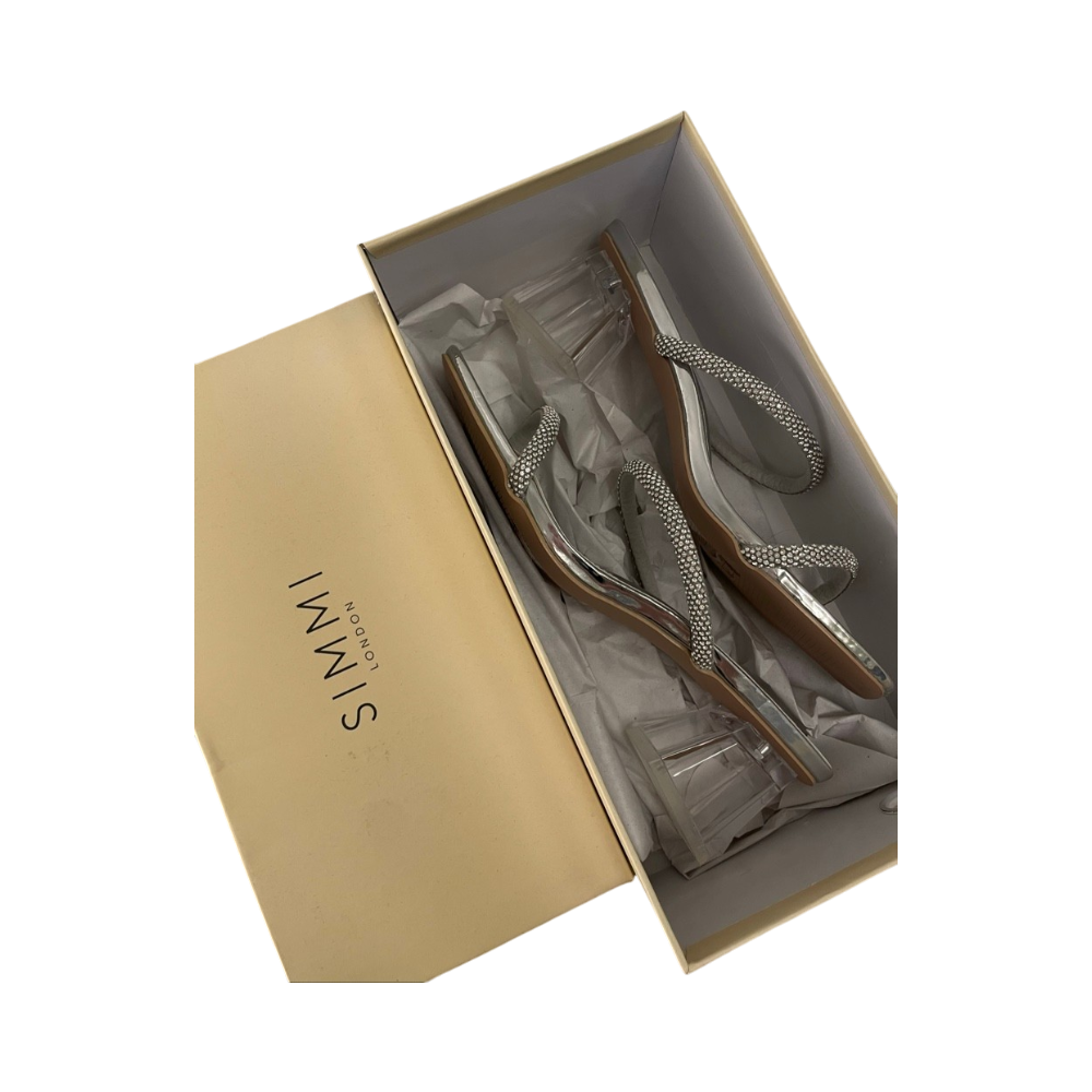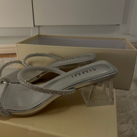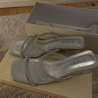 Käyttämättömät alkuperäisessä pakkauksessa olevat hopeat sandaalit, joissa läpinäkyvä korko. Tosi mukavat päällä ja hyvät kävellä, 5cm korko.